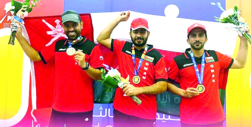ശൈഖ് സബാഹ് അൽ അഹമ്മദ് ഒളിമ്പിക്സ് ഷൂട്ടിങ് കോംപ്ലക്സിൽ നടന്ന പുരുഷന്മാരുടെ 10 മീറ്റർ എയർ റൈഫിൾ ഇനത്തിലാണ് ഒമാൻ വെള്ളിയാഴ്ച ആദ്യ സ്വർണം നേടിയത്. ആതിഥേയരായ കുവൈത്തിനെ 16-12നാണ് തോൽപിച്ചത്. ഇസാം അൽ ബലൂഷി, മുഹമ്മദ് അൽ ഹജ്രി, സലിം അൽ നബി എന്നിവരായിരുന്നു ഒമാനുവേണ്ടി മത്സരിച്ചിരുന്നത്. ഈ വിഭാഗത്തിൽ വെങ്കലം നേടിയത് ബഹ്റൈനാണ്. 17-13ന് സൗദി അറേബ്യയെയാണ് തോൽപിച്ചത്. പുരുഷന്മാരുടെ 25 മീറ്റർ റാപ്പിഡ് ഫയർ പിസ്റ്റൾ ടീം വിഭാഗത്തിലാണ് ഒമാന്റെ രണ്ടാം സ്വർണം. ബഹ്റൈനെ 16-8ന് തകർത്താണ് ഷൂട്ടിങ് റേഞ്ചിൽനിന്നുള്ള തങ്ങളുടെ സ്വർണനേട്ടം ആറാക്കിയത്. മുആദ് അൽ ബലൂഷി, സുൽത്താൻ അൽ ഹജ്രി, ജമാൽ അൽ ഹത്താലി എന്നിവരായിരുന്നു സുൽത്താനേറ്റിനുവേണ്ടി മത്സരിച്ചിരുന്നത്. 17-11ന് കുവൈത്തിനെ അട്ടിമറിച്ച് ഈ വിഭാഗത്തിൽ ഖത്തർ വെങ്കല മെഡൽ നേടി.