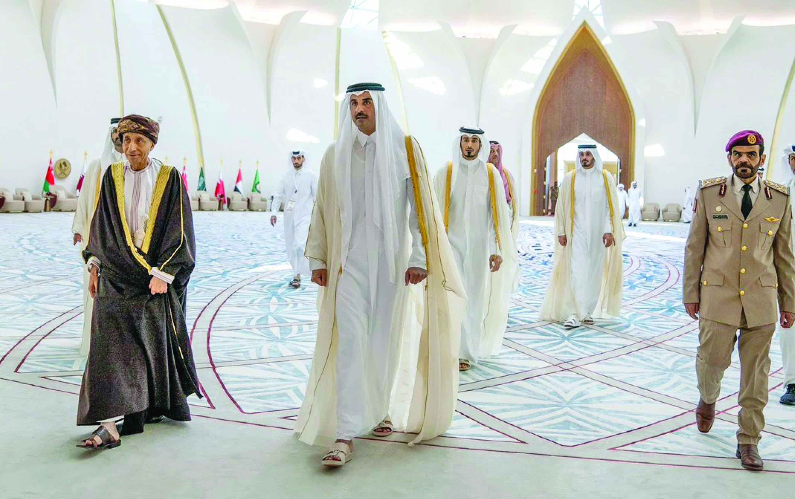 ജി.സി.സി സെക്രട്ടറി ജനറൽ ജാസിം മുഹമ്മദ് അൽ ബുദൈവി, ഖത്തറിലെ ഒമാൻ അംബാസഡർ സയ്യിദ് അമ്മാർ അബ്ദുല്ല അൽ ബുസൈദി, ഒമാനിലെ ഖത്തർ അംബാസഡർ ശൈഖ് ജാസിം അബ്ദുൽറഹ്മാൻ ആൽഥാനി, ഖത്തർ സ്റ്റേറ്റ് ഉദ്യോഗസ്ഥർ, ഖത്തറിലെ ഒമാൻ എംബസി അംഗങ്ങൾ എന്നിവർ ചേർന്ന് സ്വീകരിച്ചു.