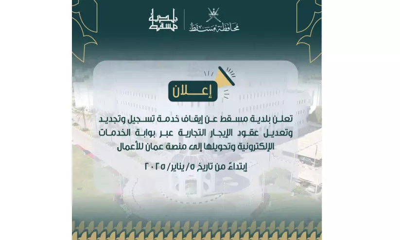 ഡിജിറ്റൽ പരിവർത്തനത്തിനായുള്ള ശ്രമങ്ങളുടെ ഭാഗമാണ് ഈ നീക്കമെന്ന് മസ്കത്ത് മുനിസിപ്പാലിറ്റി കൂട്ടിച്ചേർത്തു. കെട്ടിട ഉടമയും ഉപയോക്താവും തമ്മിലുള്ള ഇടപാടുകള് സുഗമമാക്കുന്നതിന് ഒമാന് ബിസിനസ് പ്ലാറ്റ്ഫോം വഴി രജിസ്ട്രേഷന് നടപടികള് സഹായകമാകും.