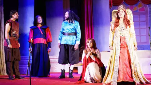 അശോക് ശശി രചന നിര്വഹിച്ച നാടകം രാജേഷ് ബാലകൃഷ്ണനാണ് സംവിധാനം ചെയ്തത്. മസ്കത്തിലെ ഒമാന് ഫിലിംസൊസൈറ്റി ഹാളില് നടന്ന നാടകം ആദ്യവസാനംവരെ സ്വദേശികളേയും വിദേശികളേയും ഒരുപോലെ പിടിച്ച് ഇരുത്തുന്നതായി. ഡോ.ജെ. രത്നകുമാര് ചെയര്മാനായും സിയുഹുൽ ഹഖ് ലാരി വൈസ്ചെയര്മാനും മന്സൂര് അഹമദ് കണ്വീനറും ഫിർദൗസ് ജോയൻറ് കൺവീനറും ആയ ഇന്റര്നാഷനല് ഓര്ഗനൈസേഷന് ക്രീയേറ്റിവ് ഇവെന്റ്സും (ഐ.ഒ.സി.ഇ), ഭാവലയ ആര്ട്ട് ആന്ഡ് കള്ച്ചറല് ഫൗണ്ടേഷനും ഒമാന് തിയറ്റർ സൊസൈറ്റിയുടെ രക്ഷാകർതൃത്വത്തിലാണ് നാടകം അവതരിപ്പിച്ചത്. വിവിധ രാജ്യങ്ങളുടെ അംബസഡർമാരടക്കം കലാരംഗത്തെ സ്വദേശികളായ അനേകം കലാകാരന്മാര് ഈ നാടകം കാണാന് എത്തിയിരുന്നു. ആർട്ടിസ്റ്റ് സുജാതന് മാസ്റ്ററാണ് രംഗകല ഒരുക്കിയത്. ഒമാനിലെ മലയാളി സമൂഹത്തില് അറിയപ്പെടുന്ന കലാകാരന് ബിജു വര്ഗീസാണ് ഷേക്സ്പിയറായി വേഷമിട്ടത്. സത്യനാഥ് ഗോപിനാഥ്, ക്രിസ്റ്റി ആന്റണി, അജീഷ് വാസുദേവ്, മോഹന്രാജ്, പ്രശാന്ത്, സതീഷ്കുമാര് അടൂര്, രവീന്ദ്രനാഥ് കൈപ്പറത്ത്, ആതിര കൃഷ്ണേന്ദു, ലക്ഷ്മി വൈശാഖ്, ധന്യമനോജ്, വിജി സുരേന്ദ്രന് തുടങ്ങിയവര് പ്രധാന കഥാപാത്രങ്ങളെ അവതരിപ്പിച്ചു.