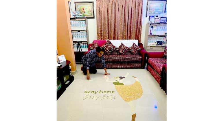 text_fieldsമസ്കത്ത്: ലോക്ഡൗൺകാലം പലരിലും പുതിയ ചിന്തകൾക്കും സർഗാത്മകതക്കുമാണ് തിരികൊളുത്തിയത്. സമൂഹമാധ്യമങ്ങൾ വഴി ഇത്തരം വേറിട്ട കഴിവുകളും സർഗസൃഷ്ടികളുമെല്ലാം പുറംലോകം അറിഞ്ഞത് പലർക്കും പ്രചോദനമാവുകയും ചെയ്തു. പത്രാധിപർക്കുള്ള കത്തുകളിലൂടെ ശ്രദ്ധ നേടിയ ദാർസൈത്തിൽ താമസിക്കുന്ന മലപ്പുറം സ്വദേശി രാമചന്ദ്രൻ നായർ ലോക്ഡൗൺ സമയം പൊതുസമൂഹത്തിന് നല്ല സന്ദേശം നൽകുന്ന രചനകളിലാണ് മുഴുകിയത്. കുടുംബവുമൊത്ത് സ്വന്തം സ്വീകരണമുറിയിൽ രാമചന്ദ്രൻ ഒരുക്കിയ വേറിട്ട സന്ദേശ ചിത്രം അതിന് നല്ലൊരുദാഹരണമാണ്. സാധാരണ പെയിൻറിങ്ങിന് ഉപയോഗിക്കുന്ന ബ്രഷും കളറുകളും ഇല്ലാതെ അരിയും പരിപ്പും കടലയും ചെറുപയറും കടുകും തുടങ്ങി അടുക്കളയിലെ പലവ്യഞ്ജനങ്ങൾ ചേർത്തു െവച്ചാണ് ‘വീട്ടിലിരിക്കൂ സുരക്ഷിതരാകൂ’ എന്ന് ആവശ്യപ്പെടുന്ന സന്ദേശചിത്രത്തിന് രാമചന്ദ്രൻ നായർ ജീവൻ നൽകിയത്. സമയവും ക്ഷമയും ചിന്താശേഷിയും ഒത്തുചേരുമ്പോഴാണ് ലോക്ഡൗണിെൻറ വിരസത ബാധിക്കാത്ത കാൻവാസുകൾ ഉണ്ടാകുന്നതെന്ന് രാമചന്ദ്രൻ നായർ പറയുന്നു. കോവിഡിെൻറ തുടക്ക കാലം എല്ലാവരിലും നിരാശയാണ് ഉണ്ടാക്കിയത്. പതുക്കെ ഈ സാഹചര്യത്തിൽ നാം ജീവിക്കാൻ പഠിച്ചു.