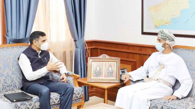 ഒമാൻ പൈതൃക കാര്യ വിഭാഗം അണ്ടർ സെക്രട്ടറി ഇന്ത്യൻ അംബാസഡർ മുനു മഹാവറുമായി കൂടികാഴ്ച നടത്തുന്നു