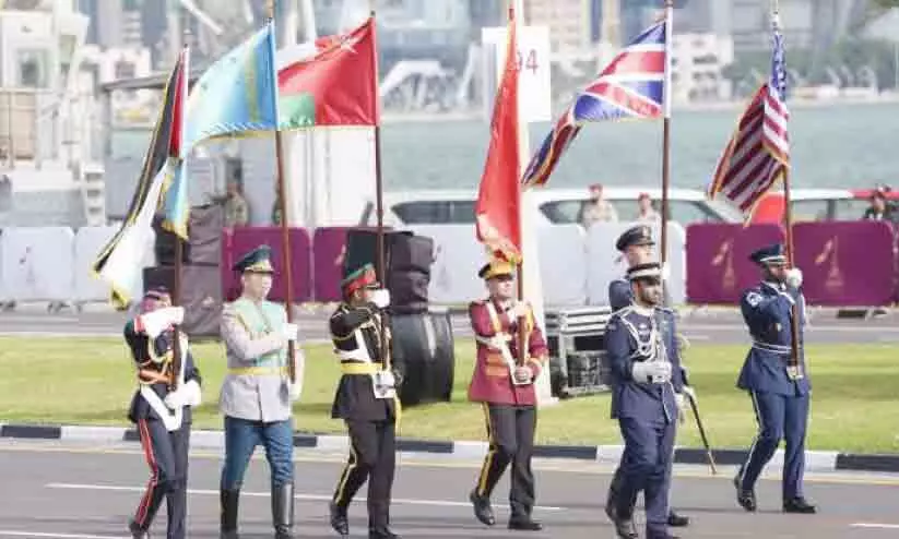 text_fieldsഖത്തർ ദേശീയദിനഘോഷത്തിൽ ദോഹയിൽ നടന്ന നാഷനൽ മാർച്ചിൽ റോയൽ ഗാർഡ് ഓഫ് ഒമാൻ മ്യൂസിക് ടീം ഒമാൻ പതാകയുമായി പങ്കെടുത്തപ്പോൾ