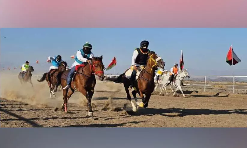 text_fieldsശീയദിനത്തിന്റെ ഭാഗമായി ബഹ്ല വിലായത്തിലെ സെയ്ഹ് അൽ ശംഖാത്ത് മൈതാനിയിൽ നടന്ന കുതിയോട്ട മത്സരത്തിൽനിന്ന്