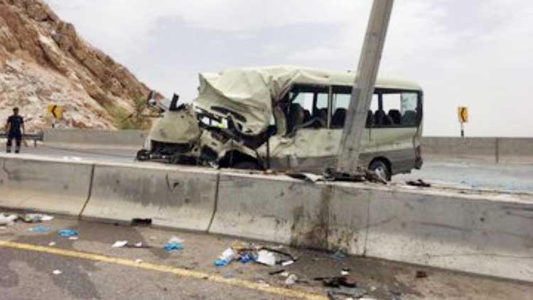 തൊഴിലാളികളുമായി പോവുകയായിരുന്ന ബസ് ആണ് അപകടത്തിൽ പെട്ടതെന്നാണ് അറിയുന്നത്. ബസിെൻറ മുൻവശം പാടേ തകർന്നു. മറിഞ്ഞ ബസിനുള്ളിൽ കുടുങ്ങിയവരെ സിവിൽ ഡിഫൻസ് സംഘം ഏറെ പണിപ്പെട്ടാണ് പുറത്തെടുത്തത്. പരിക്കേറ്റവരെ പ്രാഥമിക ചികിത്സ നൽകിയ ശേഷം ആശുപത്രിയിലേക്ക് മാറ്റി.
