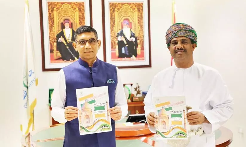 ദോഫാർ സർവകലാശാലയിലെ ഹിന്ദി കോഴ്സിെൻറ ബ്രോഷർ അംബാസഡർ മുനു മഹാവർ പ്രകാശനം ചെയ്യുന്നു