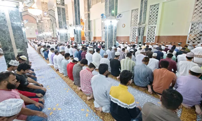 text_fieldsറൂവി സുൽത്താൻ ഖാബൂസ് മസ്ജിദിൽ തറാവീഹ് നമസ്കാരത്തിലേർപ്പെട്ടിരിക്കുന്ന വിശ്വാസികൾ - വി.കെ. ഷെഫീർ