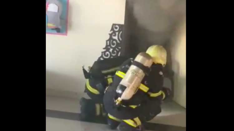സീബിൽ സ്കൂളിലുണ്ടായ തീ അണക്കുന്നു