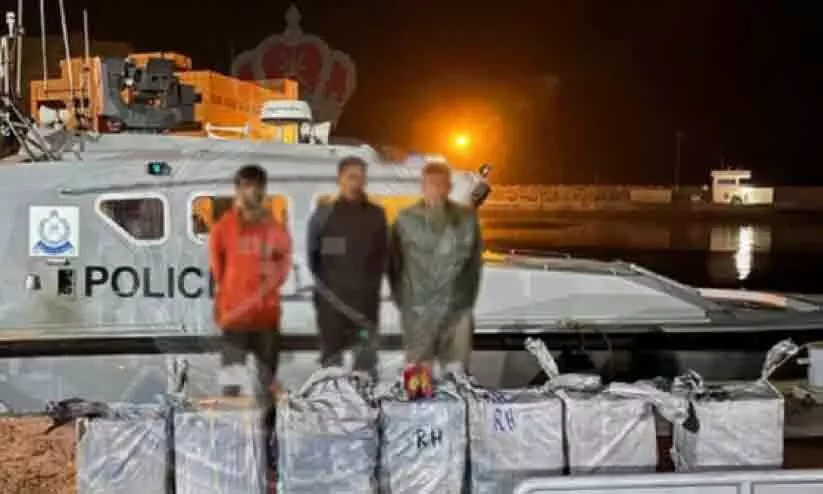 ഒമാന്റെ സമദ്രാതിർത്തി ലംഘിച്ച മൽസ്യബന്ധനബോട്ട് തടഞ്ഞുനടത്തിയ പരിശോധനയിലാണ് കള്ളക്കടത്ത് കണ്ടെത്തിയത്. ഇവ മുസന്ദമിലെ ഖസബിലെത്തിക്കാനായിരുന്നു സംഘത്തിന്റെ ശ്രമം. കസ്റ്റഡിയിലെടുത്ത പ്രതികൾക്കെതിരായ നിയമനടപടി പൂർത്തിയായി വരികയണെന്ന് റോയൽ ഒമാൻ പൊലീസ് അറിയിച്ചു.