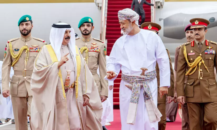 text_fieldsബഹ്റൈൻ രാജാവിന് സുൽത്താൻ ഹൈതം ബിൻ താരിഖിന്റെ നേതൃത്വത്തിൽ നൽകിയ സ്വീകരണം