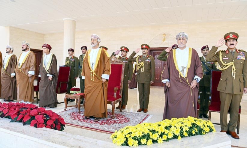 text_fieldsദേശീയ ദിനത്തിൽ ദോഫാർ ഗവർണറേറ്റിലെ സലാലയിലുള്ള അൽ നാസർ സ്ക്വയറിൽ നടന്ന സൈനിക പരേഡിൽ സുൽത്താൻ ഹൈതം ബിൻ താരിഖ് സല്യൂട്ട് സ്വീകരിക്കുന്നു