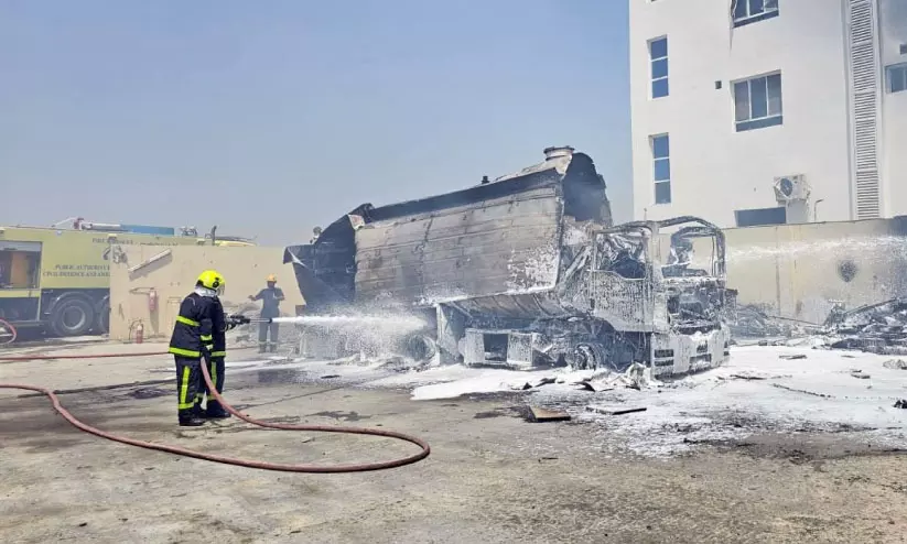 text_fieldsഅൽജിഫ്നൈൻ ഏരിയയിൽ ടാങ്കറിന് തീപിടിച്ചത് സിവിൽ ഡിഫൻസ് ആൻഡ് ആംബുലൻസ് അതോറിറ്റി അഗ്നിരക്ഷാ സേനാംഗങ്ങൾ അണക്കുന്നു