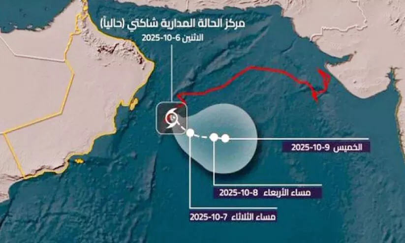 text_fieldsമസ്കത്ത്: അറബിക്കടലിൽ രൂപപ്പെട്ട ‘ശക്തി’ ചുഴലിക്കാറ്റിന്റെ ശക്തി കുറഞ്ഞ് തീവ്ര ന്യൂനമർദമായി മാറിയതായി ഒമാൻ കാലാവസ്ഥവകുപ്പ് അറിയിച്ചു. ഒമാനി തീരത്തുനിന്ന് ഏകദേശം 130 കിലോമീറ്റർ അകലെയാണ് ഇതുള്ളതെന്നാണ് ഏറ്റവും പുതിയ കാലാവസ്ഥ റിപ്പോർട്ട്. മണിക്കൂറിൽ 51 മുതൽ 61 കി.മീറ്റർ വരെയാണ് ഇതിന്റെ മധ്യഭാഗത്ത് കാറ്റിന്റെ വേഗം. ഇത് മധ്യ അറേബ്യൻ കടലിലേക്ക് നീങ്ങുന്നതായാണ് സൂചിപ്പിക്കുന്നതെന്ന് ജാഗ്രത മുന്നറിയിപ്പിൽ പറയുന്നു. അടുത്ത 48 മണിക്കൂറിനുള്ളിൽ ഈ ന്യൂനമർദം തെക്കുപടിഞ്ഞാറോട്ട് നീങ്ങി ക്രമേണ ദുർബലമാകും.