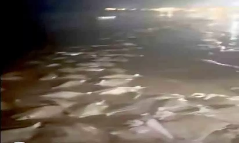 text_fieldsഖുറം ബീച്ചിൽ തിരണ്ടി മൽസ്യങ്ങൾ അടിഞ്ഞതിന്റെ ദൃശ്യം