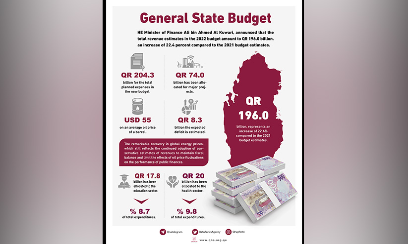 196 ബില്യണ് ഖത്തര് റിയാലാണ് അടുത്ത വര്ഷം വരവ് പ്രതീക്ഷിക്കുന്നത്. എണ്ണവില ബാരലിന് 55 ഡോളര് പ്രതീക്ഷിച്ചാണ് വരവ് കണക്കാക്കിയിരിക്കുന്നതെന്ന് ധനമന്ത്രി അലി ബിൻ അഹമ്മദ് അൽ കുവാരി പറഞ്ഞു. മുൻവർഷത്തേക്കാൾ 4.9 ശതമാണ് 2022ലെ വാർഷിക ബജറ്റ് തുകയായി കണക്കാക്കിയതെന്ന് മന്ത്രി പറഞ്ഞു. ലോകകപ്പിനായുള്ള അടിസ്ഥാനസൗകര്യ വികസനങ്ങളുടെകൂടി പശ്ചാത്തലത്തിലാണ് കാര്യമായ വർധനയുണ്ടായത്.