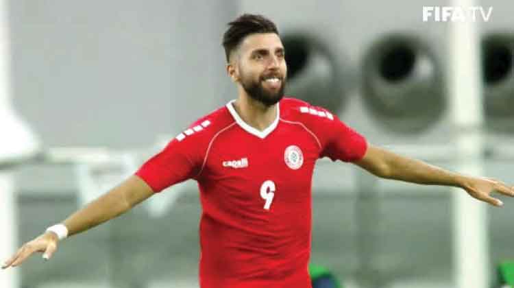 അറബ് കപ്പ് യോഗ്യത റൗണ്ടിൽ ലെബനാനുവേണ്ടി ഗോൾ നേടിയ ഹിലാൽ ഹെൽവയുടെ ആഹ്ലാദം. മത്സരത്തിൽ ഏകപക്ഷീയമായ ഒരു ഗോളിന് ലെബനാൻ ജയിച്ചു. കളിയുടെ 46 മിനിറ്റിൽ ഹിലാൽ ഹെൽവ നേടിയ ഗോളിലായിരുന്നു ജയം