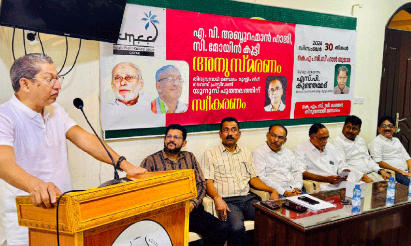 text_fieldsകെ.എം.സി.സി തിരുവമ്പാടി നിയോജക മണ്ഡലം കമ്മിറ്റി സംഘടിപ്പിച്ച എ.വി. അബ്ദുറഹ്മാൻ ഹാജി, സി. മോയിൻകുട്ടി അനുസ്മരണത്തിൽ ജില്ല മുസ്ലിം ലീഗ് വൈസ് പ്രസിഡന്റ്