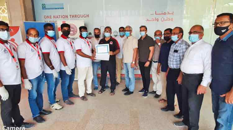 ബ്ലഡ് ഡോണേഴ്സ് കേരള ഖത്തറിൻെറ നേതൃത്വത്തിൽ രക്തദാനക്യാമ്പ് നടത്തിയതിനുള്ള സാക്ഷ്യപത്രം സംഘാടകർ സ്വീകരിക്കുന്നു
