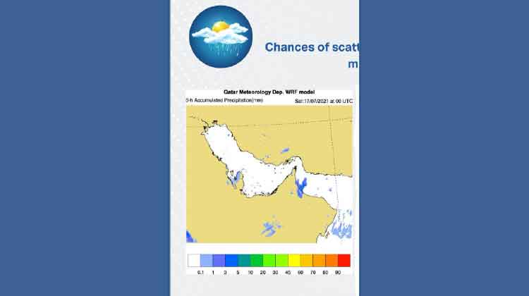 text_fieldsദോഹ: വ്യാഴാഴ്ച മുതൽ അടുത്തയാഴ്ച അന്തരീക്ഷം മേഘാവൃതമായതിനാൽ, ശനിയാഴ്ച മുതൽ ഖത്തറിൽ നേരിയ മഴ പെയ്തേക്കാമെന്ന് കാലാവസ്ഥാകേന്ദ്രം മുന്നറിയിപ്പ് നൽകുന്നു.