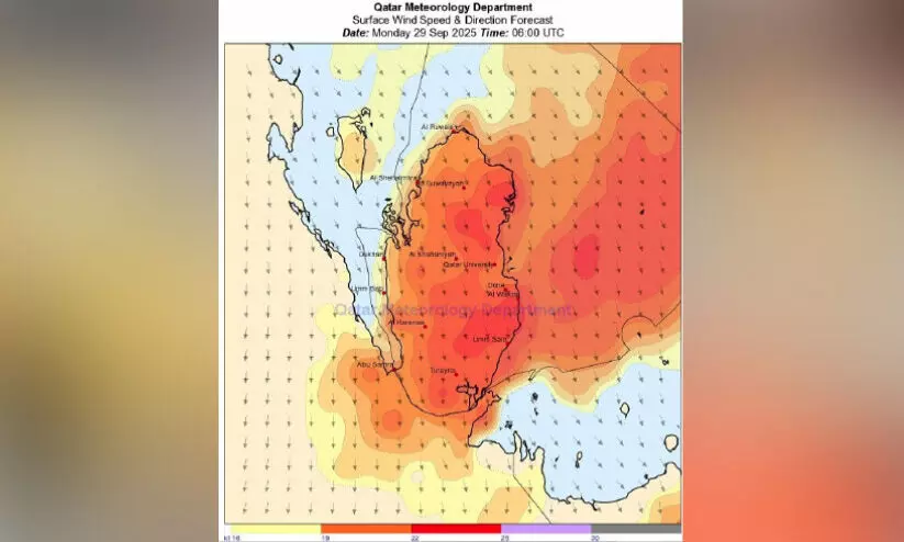 ദോഹ: തിങ്കൾ, ചൊവ്വ ദിവസങ്ങളിൽ രാജ്യത്ത് ശക്തAXമായ വടക്കുപടിഞ്ഞാറൻ കാറ്റിന് സാധ്യതയുണ്ടെന്ന് ഖത്തർ കാലാവസ്ഥ വിഭാഗം അറിയിച്ചു. കടൽ പ്രക്ഷുബ്ധമാകാൻ സാധ്യതയുള്ളതിനാൽ ഈ ദിവസങ്ങളിൽ പൊതുജനങ്ങൾ മുൻകരുതൽ പാലിക്കണമെന്ന് മുന്നറിയിപ്പുണ്ട്. ശക്തമായ കാറ്റ് പൊടിപടലങ്ങൾക്കും ചില പ്രദേശങ്ങളിൽ കാഴ്ച പരിധി കുറക്കുന്നതിനും ഇടയാക്കും.