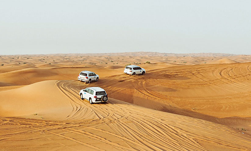 യഥാർഥ മരുഭൂമി അനുഭവത്തിനായി, മൃദുവായ മൺകൂനകൾക്ക് മുകളിലൂടെയുള്ള ഒട്ടക സവാരിയെ വെല്ലുന്ന ഒന്നും തന്നെയില്ല. എന്നാൽ, മണൽക്കാടുകൾക്ക് മുകളിലൂടെ അൽ ഉദൈദിലേക്കുള്ള മരുഭൂമിക്ക് കുറുകെ ഒരു ഉല്ലാസകരമായ സഫാരിയാത്ര ഫോർ വീൽ വാഹനങ്ങളിൽ മാത്രം എത്തിച്ചേരാനാകുന്ന ഒന്നാണ്.