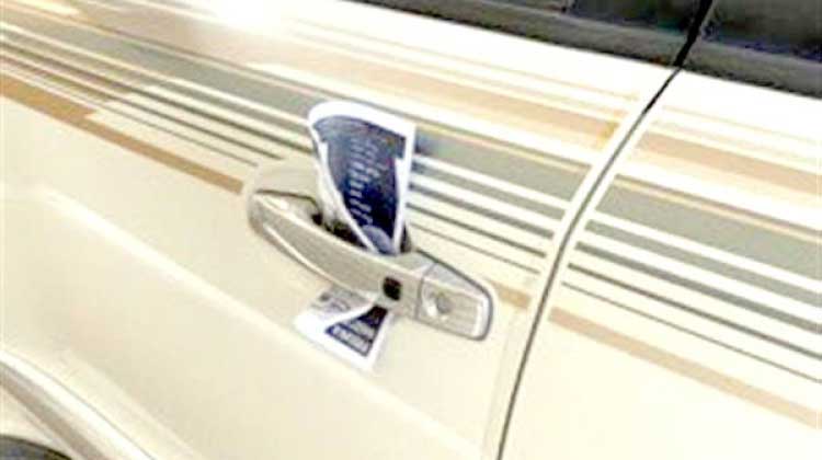 കാറുകളുടെ ഡോർ ഹാൻഡിലുകളിലും വൈപ്പർ ബ്ലേഡുകളിലും പ്രമോഷൻ, സർവിസ് പരസ്യങ്ങളുമായി നോട്ടീസുകളും ലഘുലേഖകളും നിക്ഷേപിക്കുന്നത് സാധാരണമാണ്.