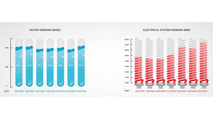 text_fieldsജൂലൈ 18 മുതൽ 24വരെയുള്ള ദിവസങ്ങളിലെ രാജ്യത്തെ വെള്ളം വൈദ്യുതി ഉപയോഗത്തിെൻറ തോത്. കഹ്റമ ട്വിറ്ററിൽ പങ്കുവെച്ചത്