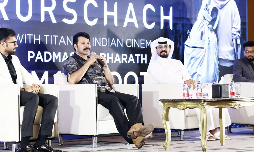 ചോദ്യങ്ങളിൽനിന്ന് ഡ്രിബ്ൾ ചെയ്തും മെയ്വഴക്കത്തോടെ ഒഴിഞ്ഞുമാറിയും ഖത്തറിൽ താരസംവാദമായി. സിനിമയുടെ അരികും അറ്റവും മുറിയുമൊക്കെ മാത്രമേ പറയൂ എന്ന മുഖവുരയോടെയാണ് മമ്മൂട്ടി 'റോഷാക്' ഗ്ലോബൽ ലോഞ്ചിന്റെ ഭാഗമായി ആരാധകർക്ക് മുന്നിലെത്തിയത്. ട്രൂത്ത് ഗ്ലോബൽ ഫിലിംസ് ചെയർമാൻ അബ്ദുൽ സമദ്, റീജനൽ ഡയറക്ടർ റാഷിദ്, റീജനൽ മാനേജർ ആർ.ജെ. സൂരജ് എന്നിവരും പങ്കെടുത്തു.