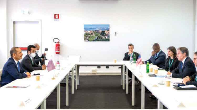 text_fieldsഇറ്റലിയിലെ റോമിൽ നടന്ന ആഗോള സഖ്യ തല ചർച്ചയിൽ ഖത്തർ വിദേശകാര്യമന്ത്രി ശൈഖ് മുഹമ്മദ് ബിൻ അബ്ദുൽ റഹ്മാൻ ആൽഥാനിയും യു.എസ് സ്റ്റേറ്റ് സെക്രട്ടറി ആൻറണി ബ്ലിൻകനും കൂടിക്കാഴ്ച നടത്തുന്നു