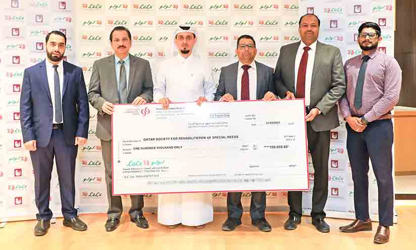 ഡി റിങ് റോഡിലെ ലുലു ഹൈപ്പർ മാർക്കറ്റ് റീജനൽ ഹെഡ്ക്വാർട്ടേഴ്സിൽ നടന്ന ചടങ്ങിൽ ലുലു ഗ്രൂപ് റീജനൽ ഡയറക്ടർ എം.ഒ. ഷൈജൻ ഒരു ലക്ഷം രൂപയുടെ ചെക്ക് ക്യു.എസ്.ആർ.എസ്.എൻ പബ്ലിക്ക് റിലേഷൻ കോഓഡിനേറ്റർ ദിയ ഖാലിദ് അൽശിമാരിക്ക് കൈമാറി. ചടങ്ങിൽ ലുലു ഹൈപ്പർ മാർക്കറ്റ് പ്രതിനിധികളും പങ്കെടുത്തു. പ്രത്യേക പരിചരണം ആവശ്യമായ ഭിന്നശേഷിക്കാർ ഉൾപ്പെടെയുള്ള വിഭാഗങ്ങൾക്ക് ഖത്തർ സൊസൈറ്റി ഫോർ റിഹാബിലിറ്റേഷൻ ഓഫ് സ്പെഷൽ നീഡ്സ് നൽകുന്ന സേവനങ്ങളിൽ പിന്തുണയെന്ന നിലയിലാണ് ലുലു ഗ്രൂപ്പിന്റെ വിഹിതമെന്ന് അധികൃതർ അറിയിച്ചു. ഭിന്നശേഷിക്കാർ ഉൾപ്പെടെയുള്ളവരെ സമൂഹത്തിന്റെ മുഖ്യധാരയിൽ എത്തിക്കുന്നതിൽ ക്യു.എസ്.ആർ.എസ്.എന്നിന്റെ പങ്കിനെ അഭിനന്ദിച്ചു.