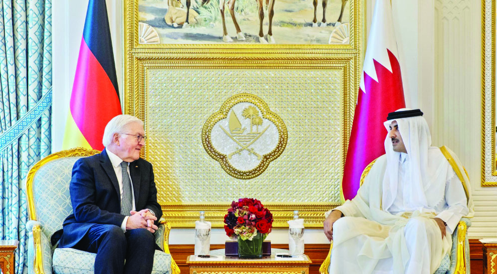 ദോഹ: ഗസ്സയിൽ സമ്പൂർണ വെടിനിർത്തൽ ആവശ്യപ്പെട്ട് ഖത്തർ അമീർ ശൈഖ് തമീം ബിൻ ഹമദ് ആൽഥാനി. രാജ്യം സന്ദർശിക്കുന്ന ജർമൻ പ്രസിഡന്റ് ഡോ. ഫ്രാങ്ക് വാൾടർ സ്റ്റീൻമിയറുമായി അമിരി ദിവാനിൽ നടന്ന കൂടിക്കാഴ്ചയിലാണ് അമീർ ഗസ്സയിൽ സമ്പൂർണ വെടിനിർത്തലും യുദ്ധത്തിന് വിരാമം കുറിക്കണമെന്നുമുള്ള ആവശ്യമുന്നയിച്ചത്.