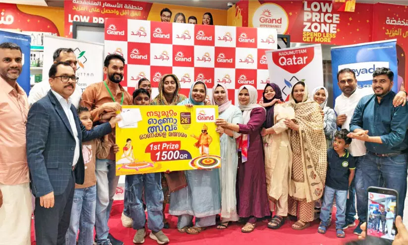 ദോഹ: ഖത്തറിലെ പ്രമുഖ റീട്ടെയിൽ ശൃംഖലയായ ഗ്രാൻഡ് മാൾ ഹൈപ്പർമാർക്കറ്റും നടുമുറ്റം വിമൻസ് അസോസിയേഷനുമായി ചേർന്ന് സംഘടിപ്പിച്ച ഓണക്കള മത്സരം ശ്രദ്ധേയമായി. വെള്ളിയാഴ്ച ഗ്രാൻഡ് എക്സ്പ്രസ് എസ്ദാൻ മാൾ വുകൈർ സ്റ്റോറിൽ നടന്ന പരിപാടിയിൽ, മുൻകൂട്ടി രജിസ്റ്റർ ചെയ്ത വിവിധ അസോസിയേഷനുകളുടെ ടീമംഗങ്ങൾ പങ്കെടുത്തു. 'നാച്വര് മീറ്റ്സ് ക്രിയേറ്റിവിറ്റി' (പ്രകൃതി സർഗാത്മകതയെ കണ്ടുമുട്ടുന്നു) എന്ന തലക്കെട്ടിലും സാഹോദര്യം എന്ന ആശയത്തിലും ഒരുക്കിയ പ്രകൃതി സൗഹൃദ ഓണക്കള മത്സരത്തില് വിവിധ കൂട്ടായ്മകളെ പ്രതിനിധീകരിച്ച് ടീമുകള് മാറ്റുരച്ചു. പരമ്പരാഗതമായി ഓണക്കളങ്ങള്ക്ക് ഉപയോഗിച്ചുവരുന്ന പൂക്കള്ക്കുപുറമെ ഇലകളും പുനരുപയോഗിക്കാവുന്ന സാധനങ്ങളാലും ചേര്ത്ത് നിര്മിച്ച ഓണക്കളങ്ങള് വൈവിദ്യമാര്ന്ന സൃഷ്ടികളാലും പുതുമ നിറഞ്ഞ ആവിഷ്കാരങ്ങളാലും വേറിട്ടതായി.