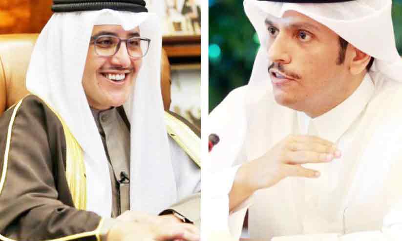 text_fieldsകുവൈത്ത് വിദേശകാര്യ മന്ത്രി ശൈഖ് അഹ്മദ് നാസർ അൽ സബാഹ് , ഖത്തർ വിദേശകാര്യമന്ത്രിയും ഉപപ്രധാനമന്ത്രിയുമായ ശൈഖ് മുഹമ്മദ് ബിൻ അബ്ദുറഹ്മാൻ ആൽഥാനി