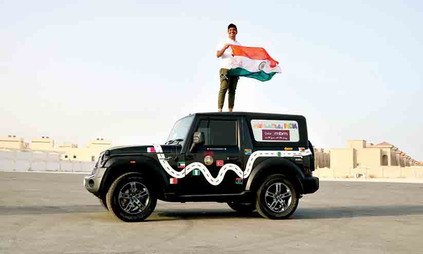 ദോഹ: യു.എ.ഇയും വൻകരപോലെ പരന്നുകിടക്കുന്ന സൗദിയും ബഹ്റൈനും കുവൈത്തും കടന്ന് മൂവാറ്റുപുഴക്കാരൻ മുഹമ്മദ് ഹാഫിസും അവന്റെ സ്വന്തം 'ഥാറും' ഇപ്പോൾ ഖത്തറിന്റെ മരുഭൂമികളും നഗരത്തിരക്കുകളും താണ്ടി പര്യടനത്തിലാണ്. കേരള രജിസ്ട്രേഷൻ വാഹനത്തിൽ ലോകം ചുറ്റാനിറങ്ങിയ കൗമാരക്കാരൻ കഴിഞ്ഞ രണ്ടാഴ്ചയിലേറെയായി ലോകകപ്പിന് വേദിയാവുന്ന ഖത്തറിന്റെ മുക്കിലും മൂലയിലും 'ഥാറു'മായി ഓടിയെത്തുന്നു. നവംബറിലാണ് മൂവാറ്റുപുഴക്കടുത്ത പുതുപ്പാടിയിൽനിന്നും ഹാഫിസിന്റെ ഥാർ രഥം ഉരുണ്ടു തുടങ്ങിയത്. ഡീൻ കുര്യാക്കോസ് എം.പിയും ചലച്ചിത്ര താരം ഷിയാസ് കരീമും ചേർന്ന് ഫ്ലാഗ് ഓഫ് ചെയ്ത 'കേരള ടു ആഫ്രിക്ക' യാത്ര തുടങ്ങുമ്പോൾ വളയംപിടിക്കാൻ ഹാഫിസിന് കൂട്ടായി സുഹൃത്ത് ഇജാസ് ഇഖ്ബാലുമുണ്ടായിരുന്നു. യു.എ.ഇയും കടന്ന് സംഘം സൗദിയിലെത്തിയപ്പോഴാണ് ആരോഗ്യകരമായ കാരണങ്ങളാൽ ഇജാസ് നാട്ടിലേക്ക് മടങ്ങിയത്. എങ്കിലും, മുന്നോട്ടുരുണ്ട് തുടങ്ങിയ സ്വപ്നങ്ങൾക്ക് ഹാഫിസ് ബ്രേക്കിട്ടില്ല. കുവൈത്തും, ബഹ്റൈനും കടന്ന് അതിർത്തികൾ താണ്ടി മാസങ്ങൾക്കിപ്പുറം ഖത്തറിന്റെ മണ്ണിലുമെത്തി.