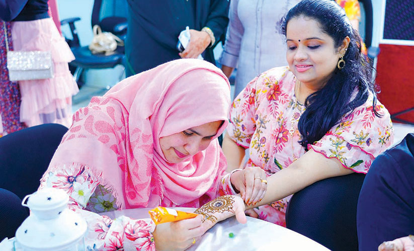 13 ഹെന്ന ഡിസൈനര്മാരാണ് മനോഹരമായ ഡിസൈനുകളില് മൈലാഞ്ചി അണിയിക്കാന് എത്തിയത്. കുട്ടികളും മുതിര്ന്നവരും ഉള്പ്പെടെയുള്ളവര് മൈലാഞ്ചി അണിയാന് എത്തിയിരുന്നു. മൈലാഞ്ചി അണിയലിനോട് അനുബന്ധിച്ച് പ്രവര്ത്തിച്ച രുചിയൂറും വിഭവങ്ങളുടെയും ആഭരണങ്ങളുടെയും വസ്ത്രങ്ങളുടെയും ഏഴോളം സ്റ്റാളുകളിലും സന്ദര്ശക തിരക്കേറി.