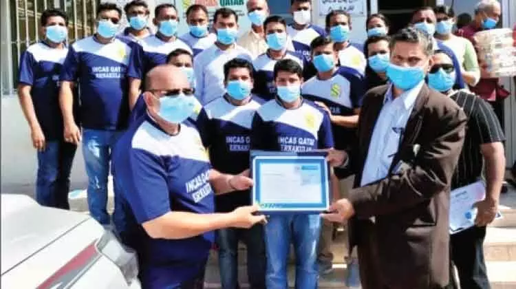 text_fieldsരക്തദാനക്യാമ്പ് നടത്തിയ ഇൻകാസ് എറണാകുളം ജില്ല കമ്മിറ്റി അംഗങ്ങൾ ഹമദ് ബ്ലഡ് ഡോണർ സെൻറർ സാക്ഷ്യപത്രം സ്വീകരിച്ചപ്പോൾ