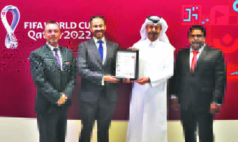text_fieldsഖത്തർ ലോകകപ്പ് സംഘാടനത്തിനുള്ള ഐ.എസ്.ഒ സർട്ടിഫിക്കറ്റ് സി.ഇ.ഒ നാസർ അൽഖാതിർ ഏറ്റുവാങ്ങുന്നു
