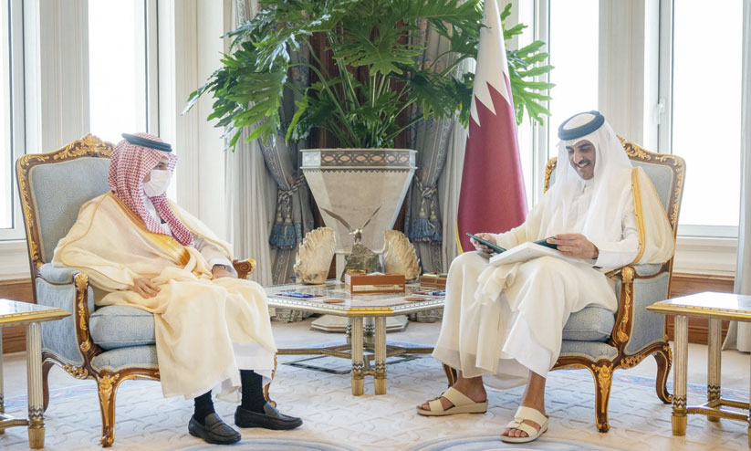text_fieldsസൗദി രാജാവിെൻറ സന്ദേശം വിദേശകാര്യമന്ത്രി ഫൈസൽ ബിൻ ഫർഹാൻ ഖത്തർ അമീർ ശൈഖ് തമീം ബിൻ ഹമദ് ആൽഥാനിക്ക് കൈമാറിയപ്പോൾ