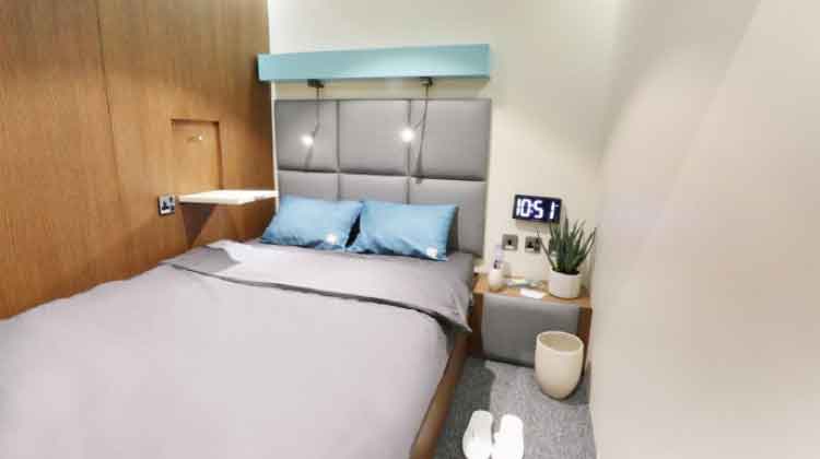 ചാരിയിരിക്കുന്നതിന് സീറ്റായും കിടക്കുന്നതിന് ബെഡായും ഉപയോഗിക്കാൻ വിധത്തിലുള്ളതാണ് ഫ്ലക്സി സ്യൂട്ട് പോഡുകൾ. വെളിച്ചം ക്രമീകരിക്കാൻ കഴിയുന്ന വിളക്കുകൾ, മൊബൈലിലും ലാപ്ടോപിലും കണക്ട് ചെയ്യാൻ വിധത്തിലുള്ള 32 സ്ക്രീൻ, കപ് ഹോൾഡറുകൾ, ഫോൾഡിങ് േട്ര ടേബിളുകൾ, ചെറിയ വേസ്റ്റ് ബിൻ, ബാഗേജ് സൂക്ഷിക്കാനുള്ള സ്ഥലം, കോട്ട്, ഷൂസ്, ലാപ്ടോപ് എന്നിവ സൂക്ഷിക്കാനുള്ള കമ്പാർട്ട്മെൻറ് എന്നിവയാണ് ഫ്ലക്സി സ്യൂട്ട് പോഡിെൻറ സവിശേഷതകൾ. മുതിർന്ന രണ്ടുപേർക്കും ഒരുകുട്ടിക്കും വിശ്രമിക്കാൻ സൗകര്യമുള്ളതാണ് സ്ലീപ് കാബിനുകൾ. നാല് ഡബ്ൾ ബെഡുകളും മടക്കിവെക്കാൻ കഴിയുന്ന കുട്ടികൾക്കായുള്ള ഒരു പുൾ-ഔട്ട് ബെഡുമാണ് ഇവിടെയുണ്ടാകുക. പ്രധാനമായും കുടുംബങ്ങൾക്കാണ് ഇവ കൂടുതൽ അനുയോജ്യമാകുക. ഇവ കൂടാതെ, ഒമ്പത് ബങ്ക് ബെഡുകളും സന്ദർശകർക്ക് ലഭ്യമാണ്. റീഡിങ് ലൈറ്റ്, അലാം ക്ലോക്ക്, കോട്ട് ഹാങ്കർ, േട്ര ടേബ്ൾ, കണ്ണാടി എന്നിവ ഇവിടെ ലഭ്യമാണ്. തലയണയും ബ്ലാങ്കറ്റുകളും