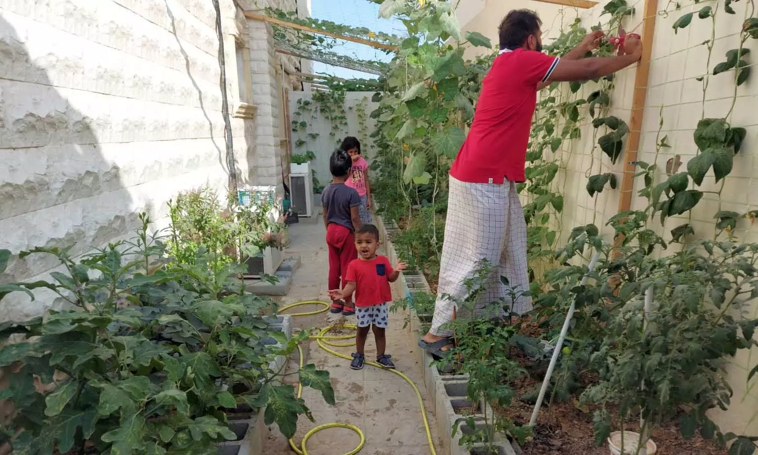 text_fieldsഅസ്ലമും മക്കളും കൃഷി പരിചരിക്കുന്നു