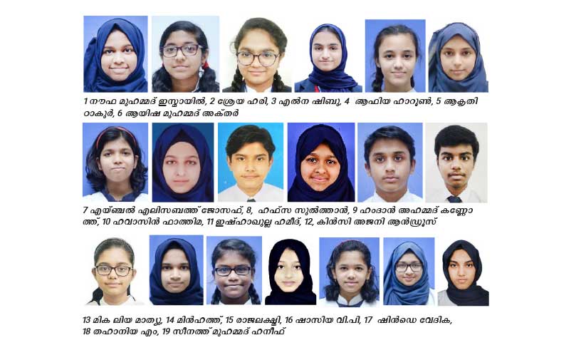 97.2 ശതമാനം മാർക്കുമായി നൗഫ മുഹമ്മദ് ഇസ്മായിൽ ഒന്നാം സ്ഥാനം നേടി. ആഫിയ ഹാറൂൺ വാഴപ്പറമ്പത്ത്, ശ്രേയ ഹരി (97 ശതമാനം) എന്നിവർ രണ്ടാം സ്ഥാനക്കാരായി. ഇൽന ഷിബു (96.6 ശതമാനം) മൂന്നാം സ്ഥാനക്കാരിയായി.
