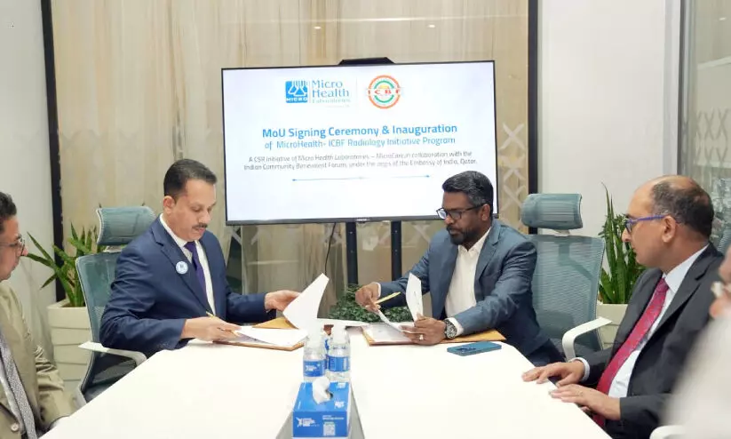 ദോഹ: ഖത്തറിലെ പ്രമുഖ സ്വകാര്യ മേഖലാ പ്രിസിഷൻ ഡയഗ്നോസ്റ്റിക് സെന്ററായ മൈക്രോ ഹെൽത്ത് ലബോറട്ടറീസ്, ഖത്തറിലെ ഇന്ത്യൻ എംബസിക്ക് കീഴിൽ പ്രവർത്തിക്കുന്ന ഇന്ത്യൻ കമ്യൂണിറ്റി ബിനെവലന്റ് ഫോറവുമായി (ഐ.സി.ബി.എഫ്) ധാരണപത്രം ഒപ്പുവെച്ചു. ഖത്തറിലെ കുറഞ്ഞ വരുമാനമുള്ള പ്രവാസികൾക്ക് സൗജന്യ റേഡിയോളജി സേവനങ്ങൾ നൽകുന്നതിനാണ് സഹകരണം. ഖത്തറിലെ ഇന്ത്യൻ അംബാസഡർ വിപുലിന്റെ സാന്നിധ്യത്തിൽ നടന്ന ചടങ്ങിൽ ഇന്ത്യൻ എംബസിയിലെ ഫസ്റ്റ് സെക്രട്ടറി ആൻഡ് ഐ.സി.ബി.എഫ് കോഓഡിനേറ്റിങ് ഓഫിസറായ ഐശ് സിങ്ങാൾ, ഐ.സി.ബി.എഫ് ഭാരവാഹികൾ, മൈക്രോ ഹെൽത്ത് ലബോറട്ടറീസിന്റെ പ്രതിനിധികൾ എന്നിവരും പങ്കെടുത്തു.