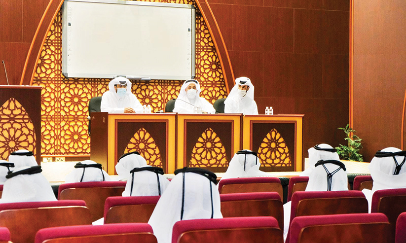 text_fieldsഔഖാഫ് ഇസ്ലാമികകാര്യ മന്ത്രി ഗാനിം ബിൻ ഷഹീൻ ബിൻ ഗാനിം അൽ ഗാനിം മതപണ്ഡിതരുമായി