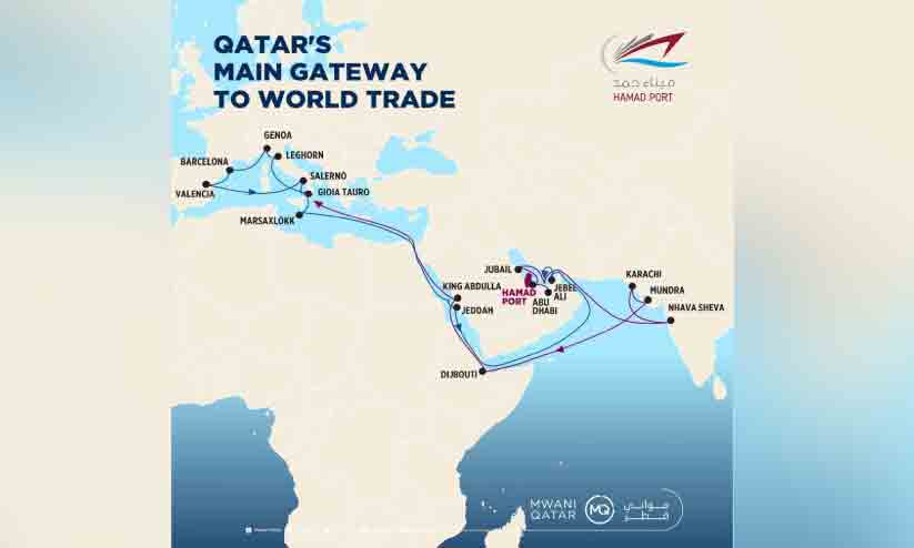 text_fieldsദോഹ: ഹമദ് തുറമുഖത്തെ ചെങ്കടലിലെയും ഇന്ത്യൻ ഉൾക്കടലിലെയും പടിഞ്ഞാറൻ മെഡിറ്ററേനിയൻ മേഖലയിലെയും തുറമുഖങ്ങളെ ബന്ധിപ്പിക്കുന്ന പ്രതിവാര ചരക്കുകപ്പൽ സർവിസ് പ്രഖ്യാപിച്ച് ഖത്തർ പോർട്ട് മാനേജ്മെന്റ് കമ്പനിയായ മവാനി ഖത്തർ.
