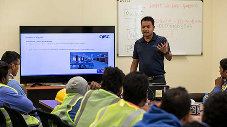 text_fieldsലോകകപ്പ് തൊഴിലാളികൾക്കായി നടത്തുന്ന പരിശീലന ബോധവത്കരണ ക്ലാസ് (ഫയൽ ചിത്രം)