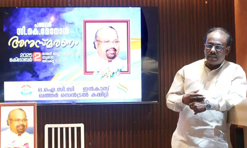 ദോഹ: ഒ.ഐ.സി.സി ഇൻകാസ് സെൻട്രൽ കമ്മിറ്റിയുടെ ആഭിമുഖ്യത്തിൽ സംഘടനയുടെ മുൻ രക്ഷാധികാരിയും പ്രഥമ ഗ്ലോബൽ ചെയർമാനുമായിരുന്ന സി.കെ. മേനോൻ അനുസ്മരണ സംഗമം നടത്തി. പരിപാടിയിൽ ജനറൽ സെക്രട്ടറി ശ്രീജിത്ത് നായർ സ്വാഗതം പറഞ്ഞു. തുടർന്ന് ആക്ടിങ് പ്രസിഡന്റ് നിയാസ് ചെരിപ്പത്ത് അധ്യക്ഷത വഹിച്ചു. സംഘടനയുടെ മുൻ പ്രസിഡന്റും ഗ്ലോബൽ കമ്മിറ്റി അംഗവുമായ ജോൺ ഗിൽബർട്ട് അനുസ്മരണ പ്രഭാഷണം നടത്തി.