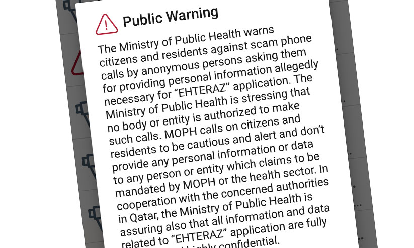 text_fieldsവ്യാജഫോൺവിളികൾ സംബന്ധിച്ച് ഇഹ്തിറാസ് ആപിലൂടെ ആരോഗ്യമന്ത്രാലയം നൽകുന്ന മുന്നറിയിപ്പ്