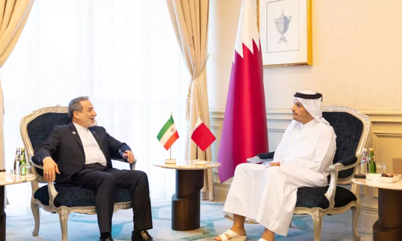 text_fieldsപ്രധാനമന്ത്രിയും വിദേശകാര്യ മന്ത്രിയുമായ ശൈഖ് മുഹമ്മദ് ബിൻ അബ്ദുറഹ്മാൻ ബിൻ ജാസിം ആൽഥാനി ഇറാൻ വിദേശകാര്യ മന്ത്രി ഡോ. അബ്ബാസ് അറഖ്ചിയുമായി കൂടിക്കാഴ്ച നടത്തുന്നു