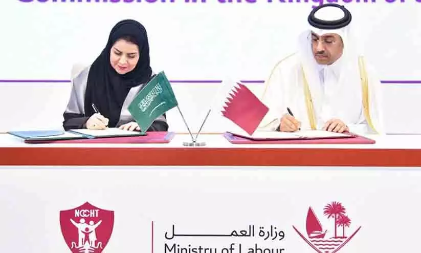 text_fieldsമനുഷ്യക്കടത്ത് തടയുന്നത് സംബന്ധിച്ച കരാറിൽ ഖത്തർ തൊഴിൽ മന്ത്രാലയവും സൗദി അറേബ്യയുടെ മനുഷ്യാവകാശ കമീഷനും ഒപ്പുവെക്കുന്നു