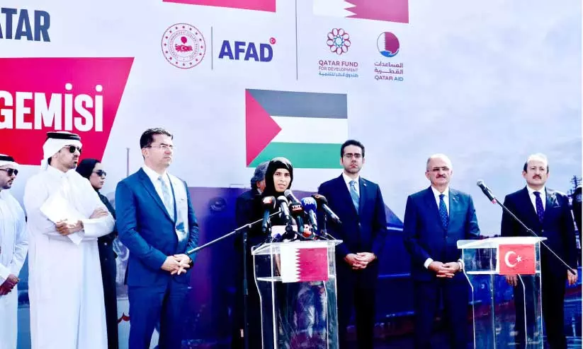 ഖത്തർ ഡെവലപ്മെന്റ് ഫണ്ട് (ക്യു.എഫ്.എഫ്.ഡി) നൽകുന്ന 1358 ടൺ സഹായവും തുർക്കിയയുടെ ഡിസാസ്റ്റർ ആൻഡ് എമർജൻസി മാനേജ്മെന്റ് പ്രസിഡൻസി (എ.എഫ്.എ.ഡി) നൽകുന്ന 550 ടൺ സഹായ സാമഗ്രികളും കപ്പലിലുണ്ട്. മെർസിൻ തുറമുഖത്ത് നിന്നും കപ്പൽ പുറപ്പെടുന്ന ചടങ്ങിൽ ഖത്തർ വിദേശകാര്യ മന്ത്രാലയത്തിലെ അന്താരാഷ്ട്ര സഹകരണ സഹമന്ത്രി ലുൽവ ബിൻത് റാഷിദ് അൽ ഖാതിർ പങ്കെടുത്തു. ഖത്തറും തുർക്കിയയും തമ്മിലെ സൗഹൃദത്തിന്റെ അടയാളം കൂടിയായാണ് ഈ സഹായ പ്രവാഹമെന്നും മാനുഷിക സഹായം വിതരണം ചെയ്യുന്നത് തുടരുമെന്നും ലുൽവ അൽ ഖാതിർ പറഞ്ഞു. ഇസ്രായേൽ യുദ്ധത്തിനും ഉപരോധത്തിനും കീഴിലുള്ള ഗസ്സയിലെ 20 ലക്ഷത്തിലധികം വരുന്ന ജനതയുടെ പോരാട്ടവും നിശ്ചയദാർഢ്യവും ഖത്തർ മന്ത്രി ചൂണ്ടിക്കാട്ടി.